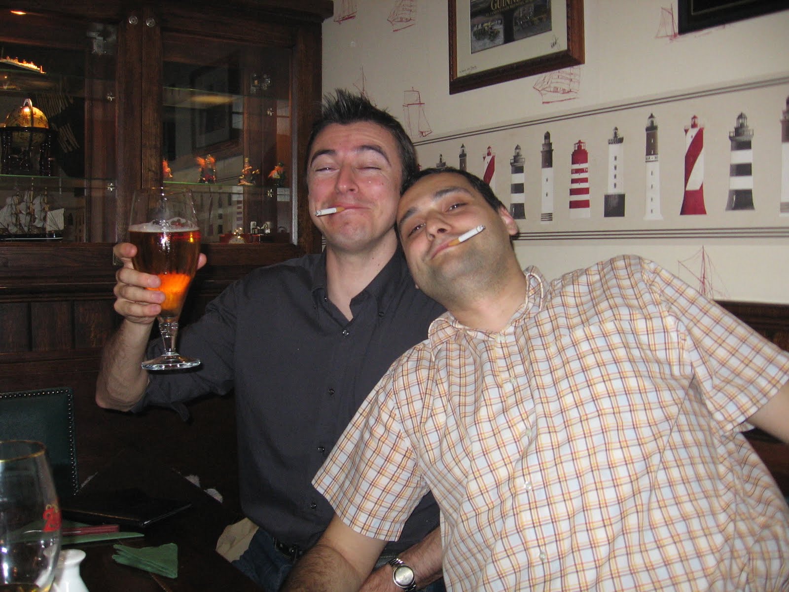 În rest e fain in Bulgaria. E ieftin. Metru pătrat nou construit este de 400 Euro/mp la vânzare. O masă cu țuică, iaurt, 5 – 8 beri, antreu (salata bulgărească, firește), fel principal (miel sau pui), desert (creme brulee) la Irish Pub in Stara Zagora a costat echivalentul a 60 RON/persoană. Fetele râd. Sau poate îmi zâmbeau mie, că sunt frumușel. =)) Eu probabil că m-am simțit foarte bine, dacă m-am regăsit a doua zi cu țigara în gură într-o poza de care nu îmi aminteam (pentru cei care nu mă cunosc sunt nefumător).