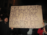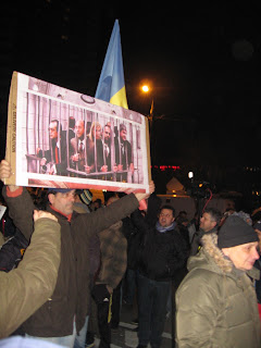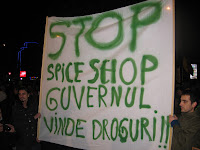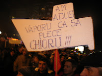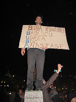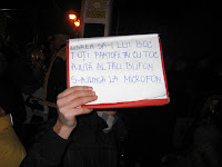 Desi nu se vede in fotografie, sunt sigur purtatorii pancartei "Romani nu mai dati spaga!" au ochii deschisi, daca nu la propriu, cel putin la figurat. Ei oare impotriva cui protesteaza?