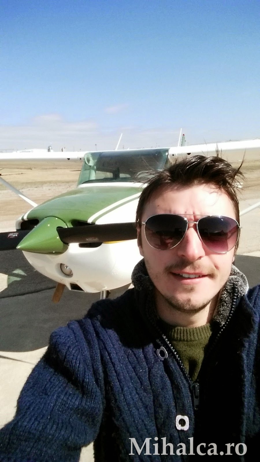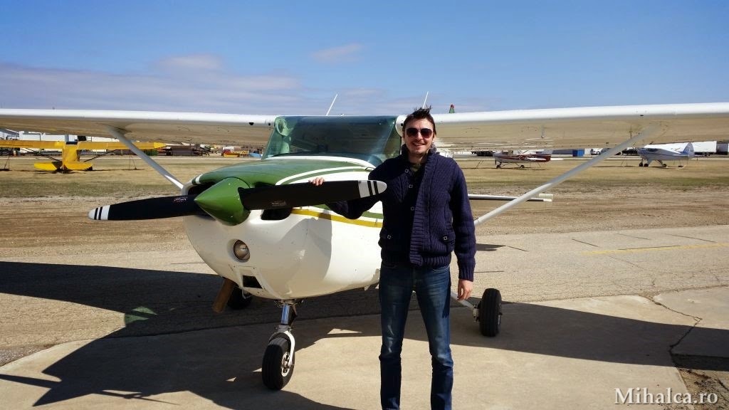 Și uite-așa, m-am trezit de dimineață, mi-am pus inelul și brățările speciale pe care le folosesc indiferent de vestimentație atunci când urmează să zbor și m-am prezentat la aeroport. Am avut parte de decolări multiple, mers la firul ierbii, curbe din flapsuri, curbe din pedale, curbe cu flapsuri și pedale, urcări accelerate și coborâri pe măsură. Și pentru că lucrurile nu păreau să fie destul de periculoase la un moment dat am primit manșa cu misiunea de a ține avionul pe linia de plutire. Nu pot decât să mărturisesc că am eșuat lamentabil, iar avionul a luat-o la deal, de-am crezut că ajungem subiect de știri. Ca fapt divers, avionul este un Cessna 172, este fabricat în Canada (deși Cessna este o firmă americană) în anul 1977 (cu doi ani înainte să mă nasc eu) și a costat 50.000 $ canadieni, second hand. Nou costă în jur de 300.000 $ canadieni. Asigurarea costă 600 $/an și este valabilă doar pentru daunele care se produc când avionul se află la sol. Pentru prăbușiri, despăgubirea este 0 $. Cessna 172 este cel mai de succes avion din istoria aviației mondiale. Primul avion a fost fabricat în anul 1965, iar în anul 2015 a fost fabricat avionul cu numărul 43.000.